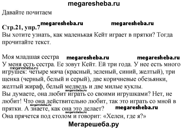 Подробный решебник (ГДЗ) по Английскому языку за 3 (третий) класс - готовый ответ часть 1. страница - 21. Авторы учебника: Верещагина, Притыкина, Углубленный уровень. Издательство: Просвещение 2013-2023.