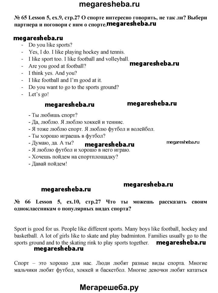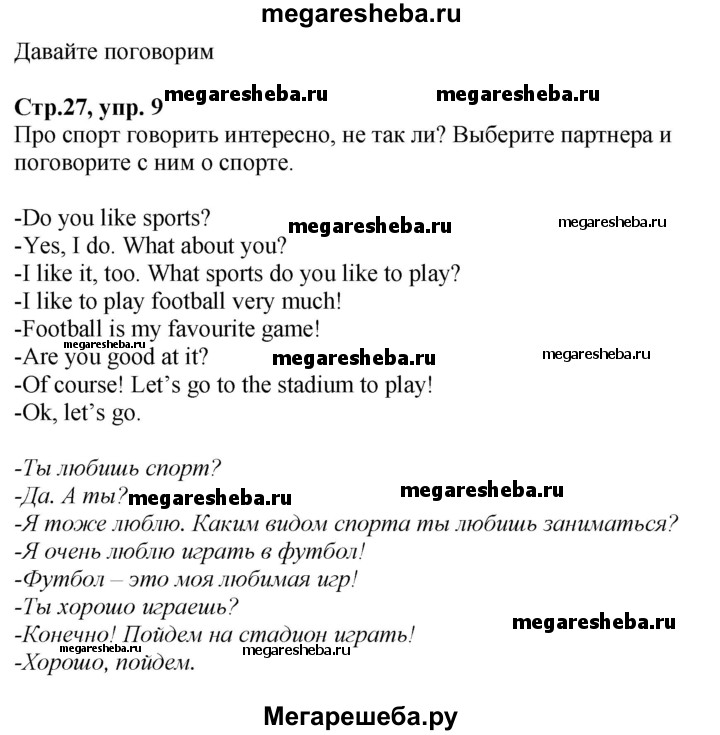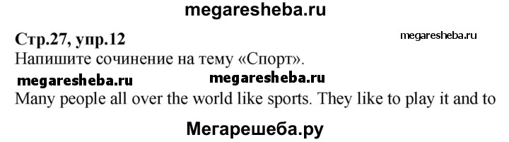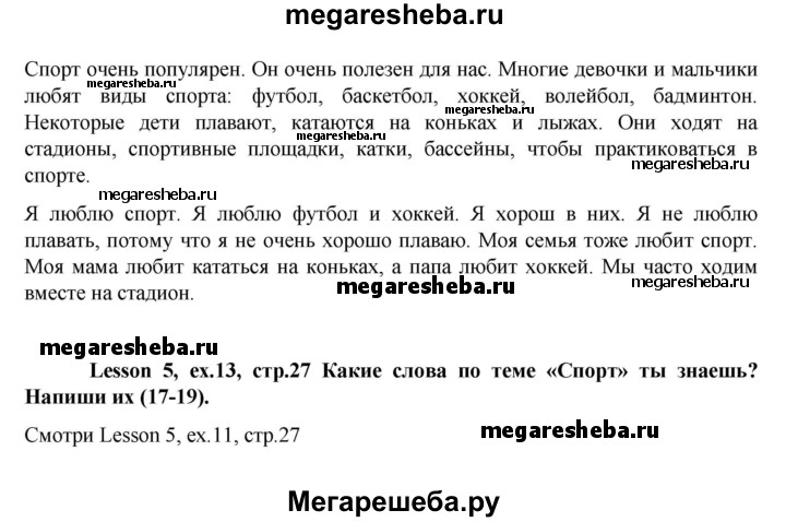 Подробный решебник (ГДЗ) по Английскому языку за 3 (третий) класс - готовый ответ часть 1. страница - 27. Авторы учебника: Верещагина, Притыкина, Углубленный уровень. Издательство: Просвещение 2013-2023.