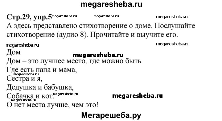 Подробный решебник (ГДЗ) по Английскому языку за 3 (третий) класс - готовый ответ часть 1. страница - 29. Авторы учебника: Верещагина, Притыкина, Углубленный уровень. Издательство: Просвещение 2013-2023.