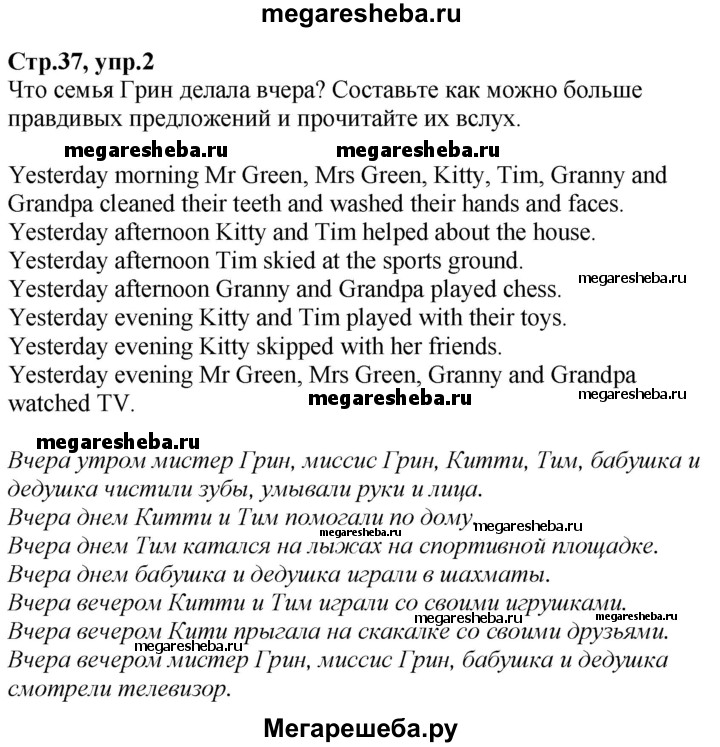 Подробный решебник (ГДЗ) по Английскому языку за 3 (третий) класс - готовый ответ часть 1. страница - 37. Авторы учебника: Верещагина, Притыкина, Углубленный уровень. Издательство: Просвещение 2013-2023.