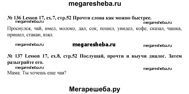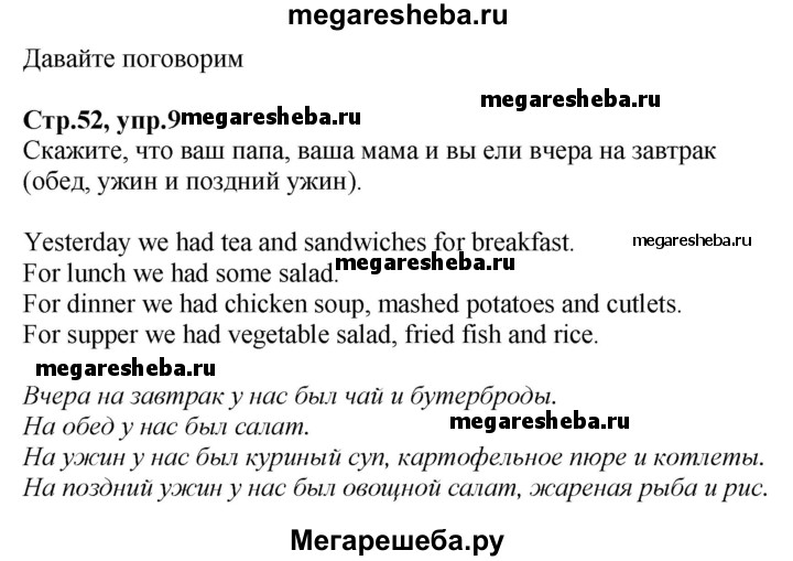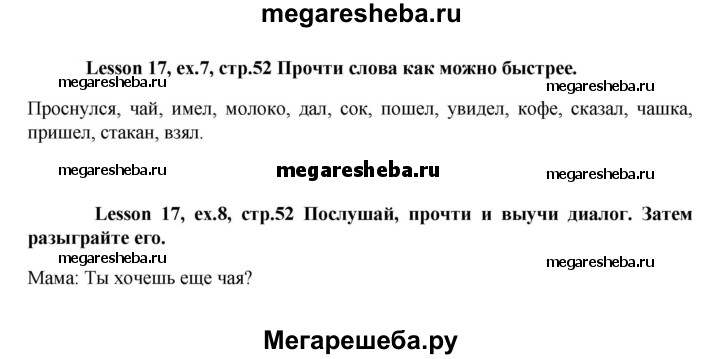 Подробный решебник (ГДЗ) по Английскому языку за 3 (третий) класс - готовый ответ часть 1. страница - 52. Авторы учебника: Верещагина, Притыкина, Углубленный уровень. Издательство: Просвещение 2013-2023.