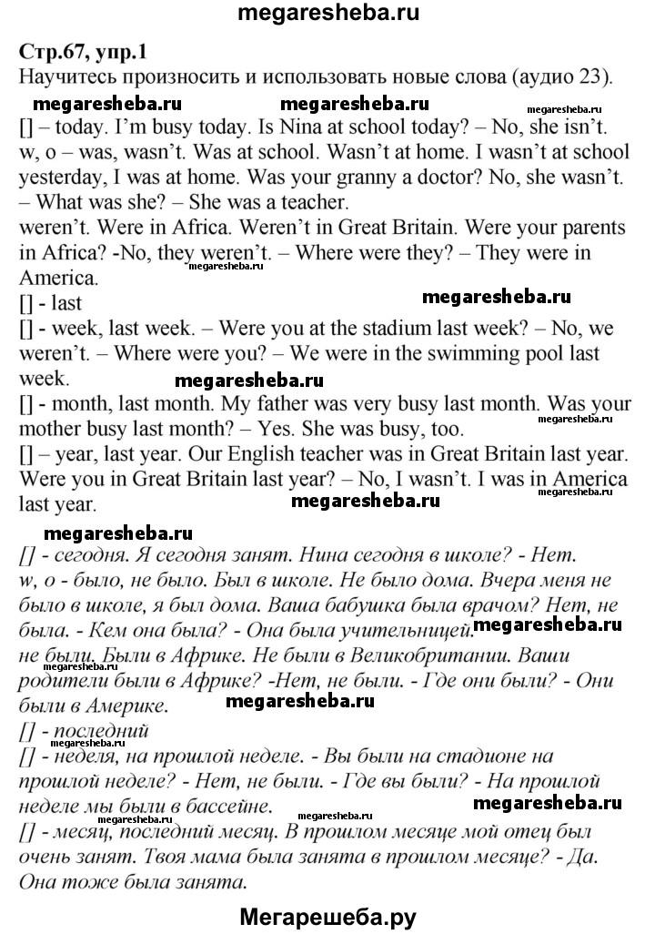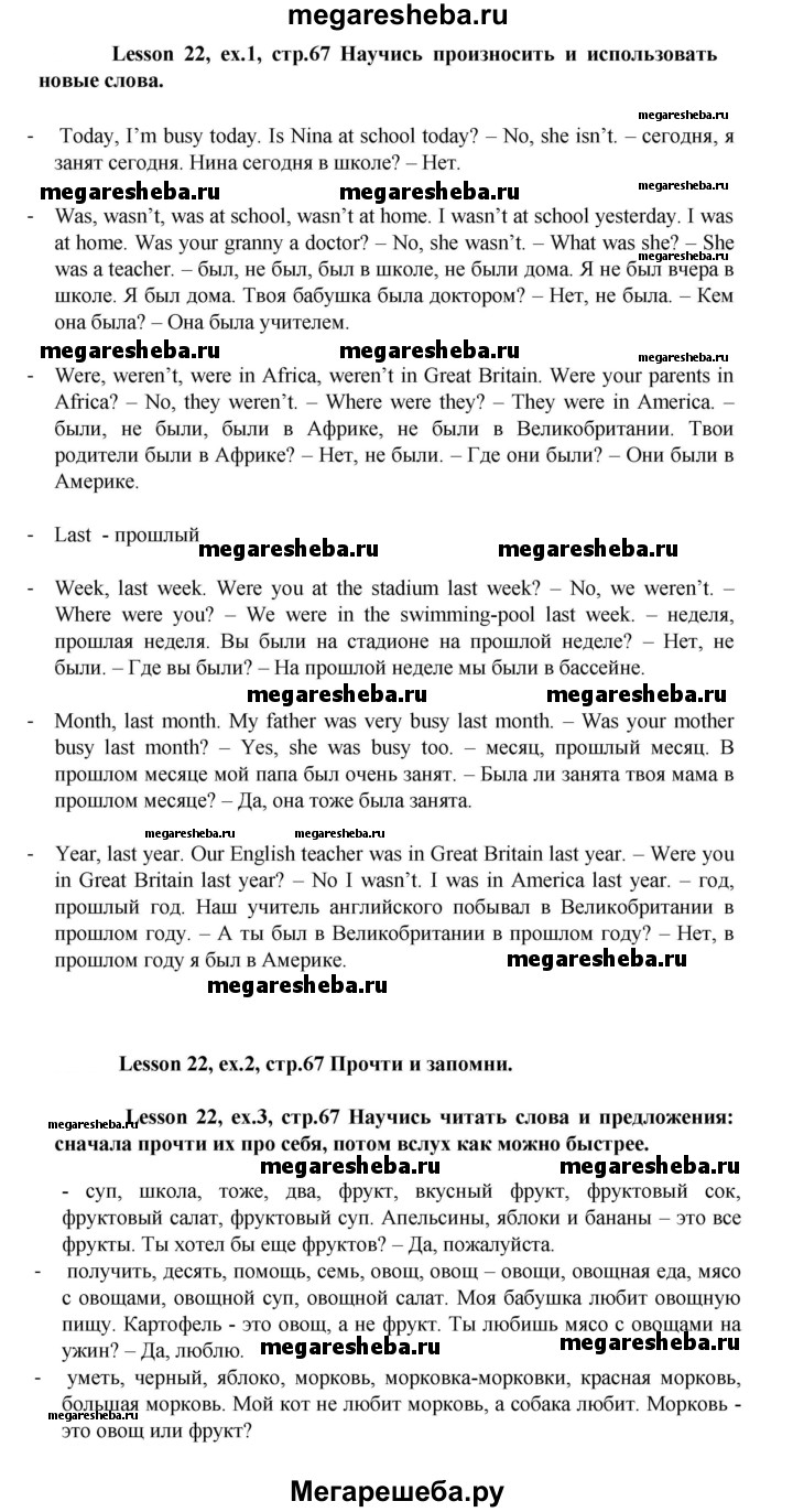Подробный решебник (ГДЗ) по Английскому языку за 3 (третий) класс - готовый ответ часть 1. страница - 67. Авторы учебника: Верещагина, Притыкина, Углубленный уровень. Издательство: Просвещение 2013-2023.