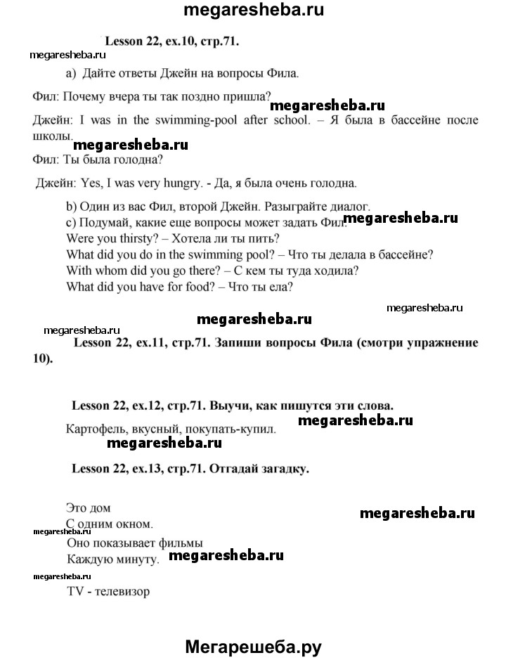 Подробный решебник (ГДЗ) по Английскому языку за 3 (третий) класс - готовый ответ часть 1. страница - 71. Авторы учебника: Верещагина, Притыкина, Углубленный уровень. Издательство: Просвещение 2013-2023.