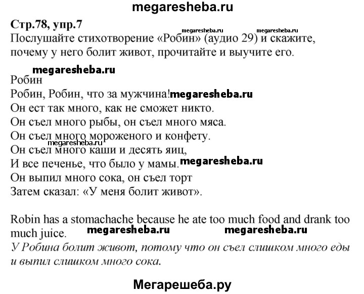 Подробный решебник (ГДЗ) по Английскому языку за 3 (третий) класс - готовый ответ часть 1. страница - 78. Авторы учебника: Верещагина, Притыкина, Углубленный уровень. Издательство: Просвещение 2013-2023.