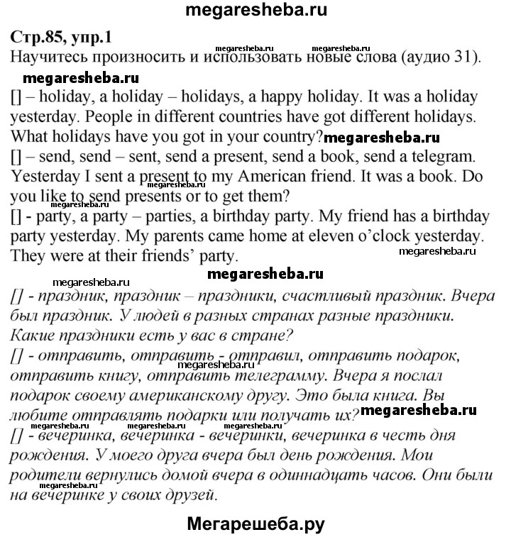Подробный решебник (ГДЗ) по Английскому языку за 3 (третий) класс - готовый ответ часть 1. страница - 85. Авторы учебника: Верещагина, Притыкина, Углубленный уровень. Издательство: Просвещение 2013-2023.