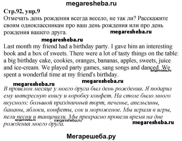 Подробный решебник (ГДЗ) по Английскому языку за 3 (третий) класс - готовый ответ часть 1. страница - 92. Авторы учебника: Верещагина, Притыкина, Углубленный уровень. Издательство: Просвещение 2013-2023.