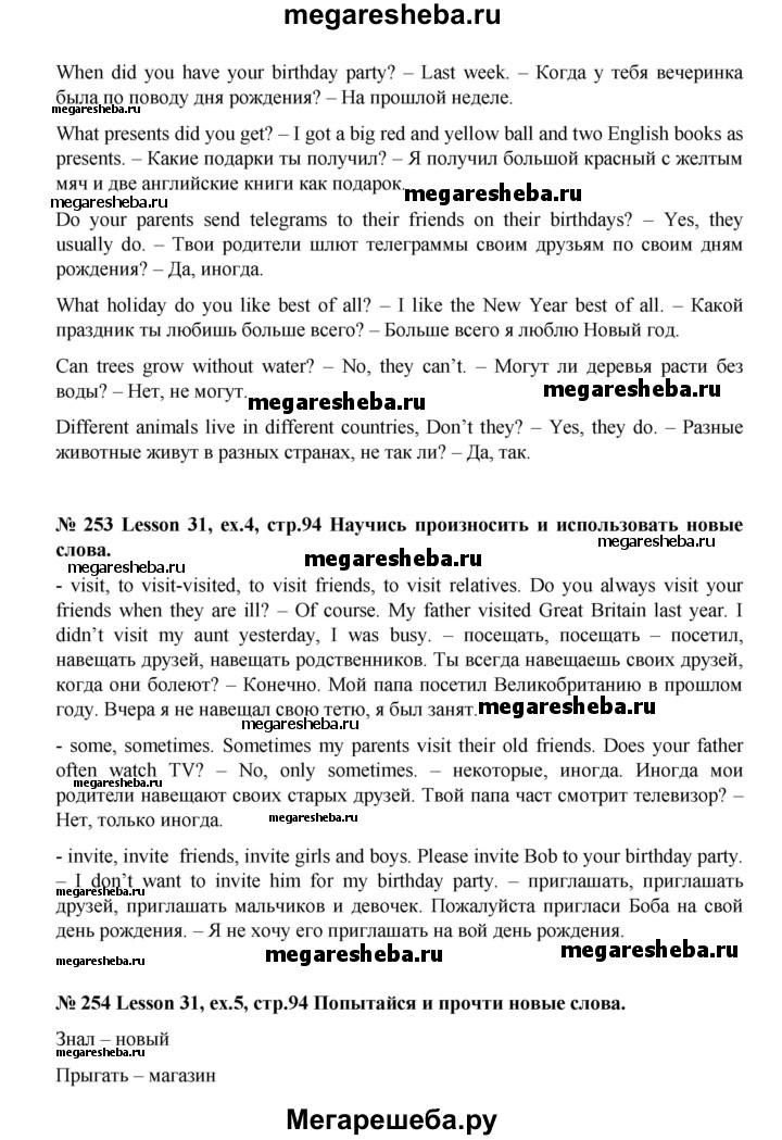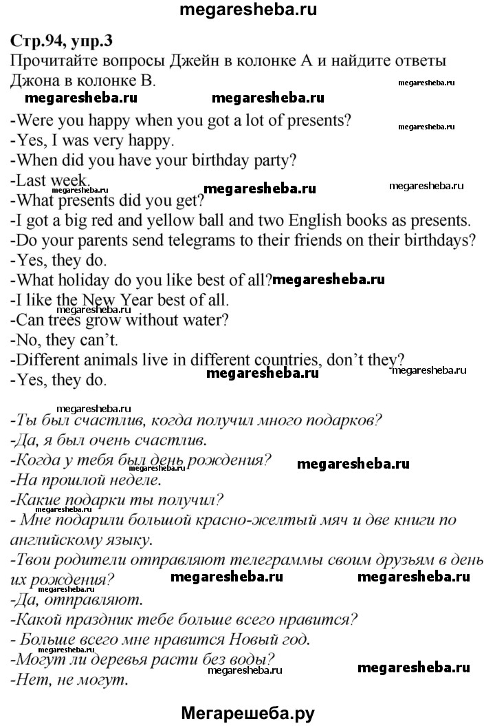 Подробный решебник (ГДЗ) по Английскому языку за 3 (третий) класс - готовый ответ часть 1. страница - 94. Авторы учебника: Верещагина, Притыкина, Углубленный уровень. Издательство: Просвещение 2013-2023.