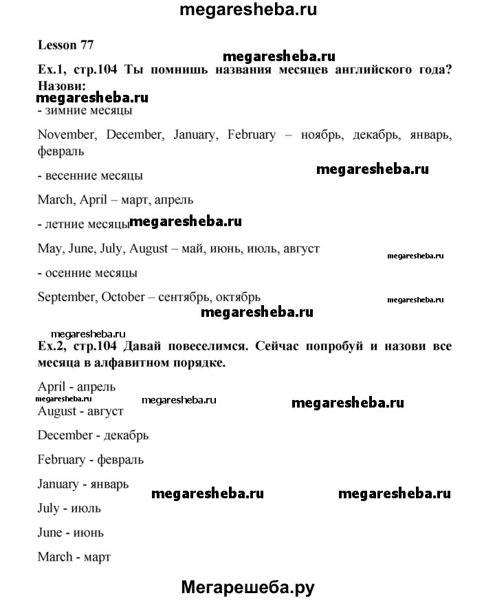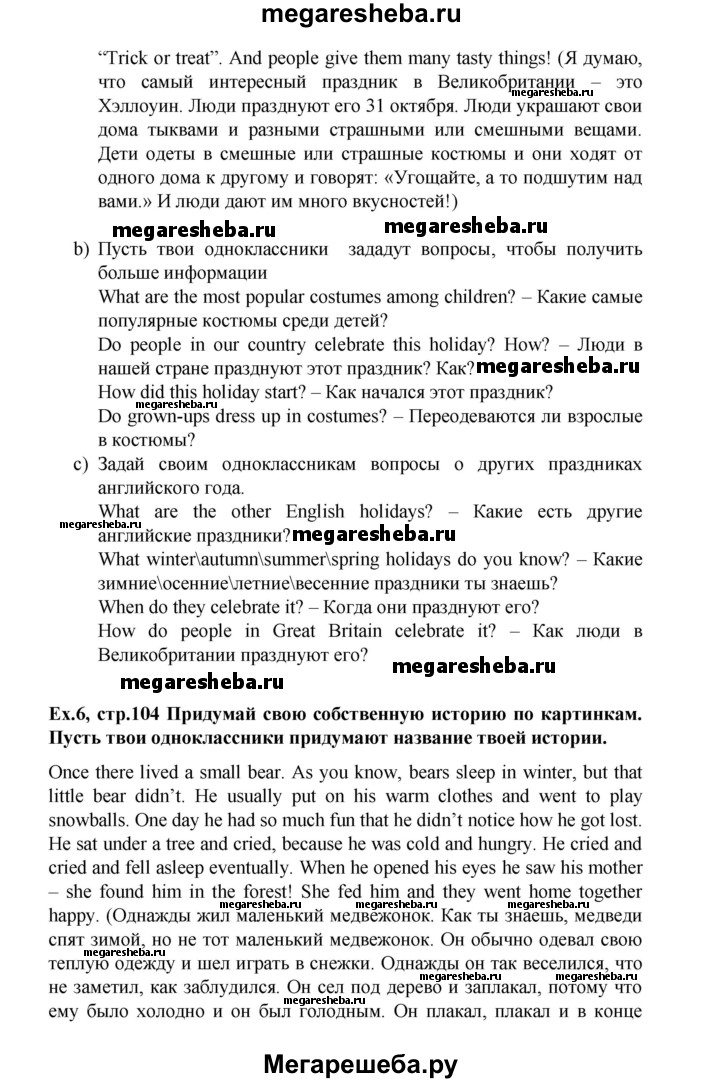 Подробный решебник (ГДЗ) по Английскому языку за 3 (третий) класс - готовый ответ часть 2. страница - 104. Авторы учебника: Верещагина, Притыкина, Углубленный уровень. Издательство: Просвещение 2013-2023.