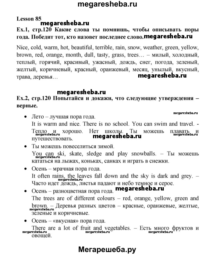 Подробный решебник (ГДЗ) по Английскому языку за 3 (третий) класс - готовый ответ часть 2. страница - 120. Авторы учебника: Верещагина, Притыкина, Углубленный уровень. Издательство: Просвещение 2013-2023.