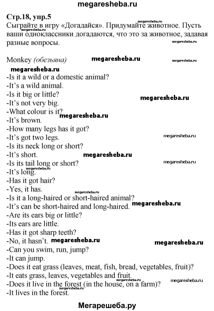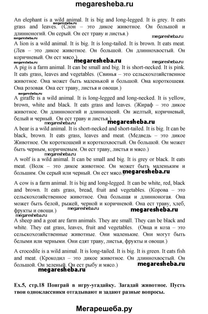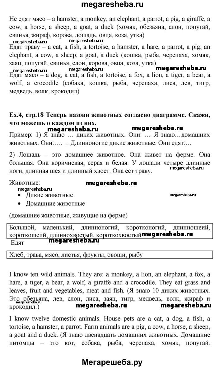 Подробный решебник (ГДЗ) по Английскому языку за 3 (третий) класс - готовый ответ часть 2. страница - 18. Авторы учебника: Верещагина, Притыкина, Углубленный уровень. Издательство: Просвещение 2013-2023.