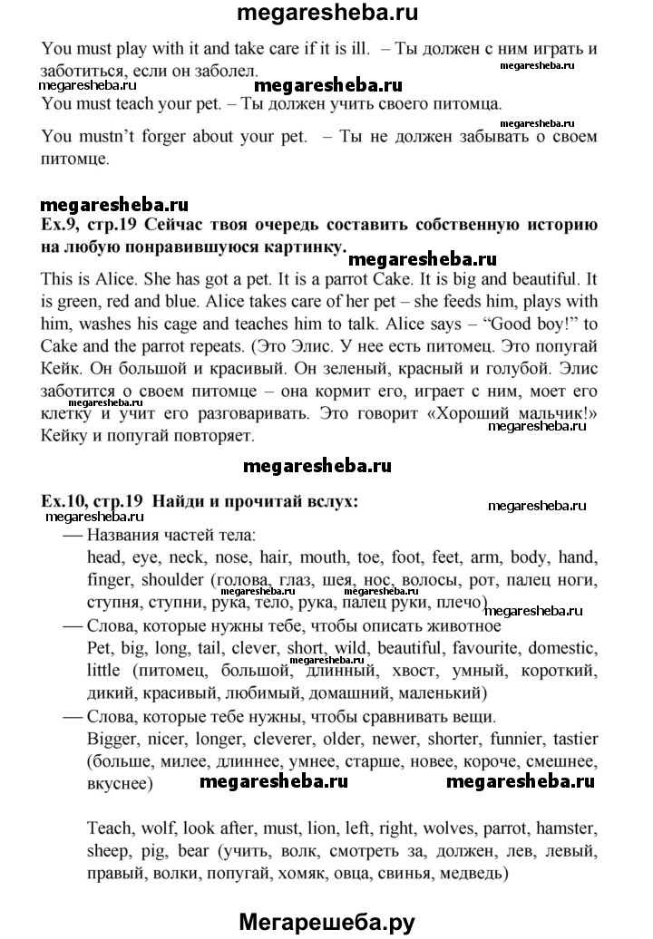 Подробный решебник (ГДЗ) по Английскому языку за 3 (третий) класс - готовый ответ часть 2. страница - 19. Авторы учебника: Верещагина, Притыкина, Углубленный уровень. Издательство: Просвещение 2013-2023.