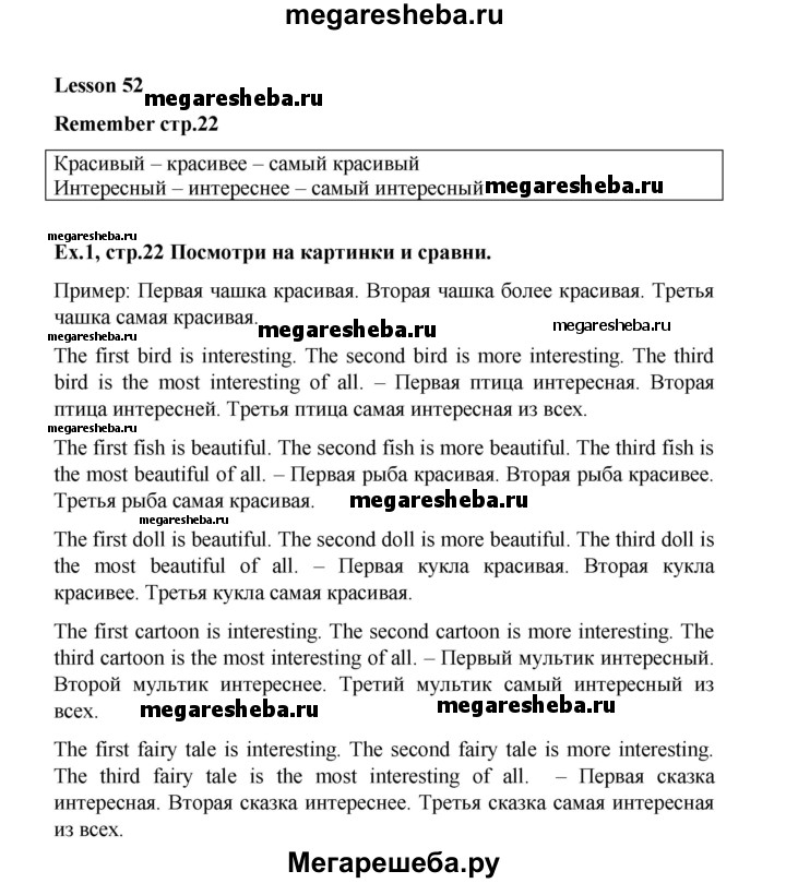 Подробный решебник (ГДЗ) по Английскому языку за 3 (третий) класс - готовый ответ часть 2. страница - 22. Авторы учебника: Верещагина, Притыкина, Углубленный уровень. Издательство: Просвещение 2013-2023.