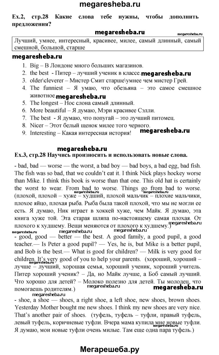 Подробный решебник (ГДЗ) по Английскому языку за 3 (третий) класс - готовый ответ часть 2. страница - 28. Авторы учебника: Верещагина, Притыкина, Углубленный уровень. Издательство: Просвещение 2013-2023.