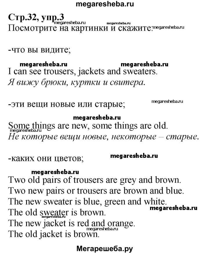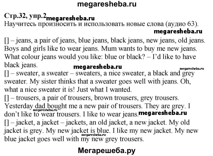 Подробный решебник (ГДЗ) по Английскому языку за 3 (третий) класс - готовый ответ часть 2. страница - 32. Авторы учебника: Верещагина, Притыкина, Углубленный уровень. Издательство: Просвещение 2013-2023.