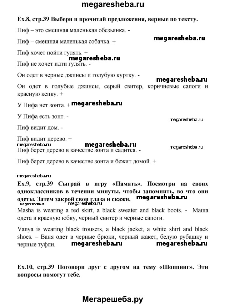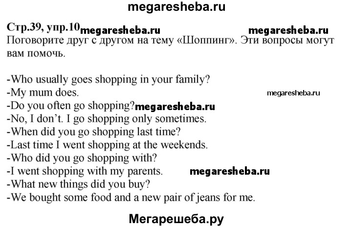 Подробный решебник (ГДЗ) по Английскому языку за 3 (третий) класс - готовый ответ часть 2. страница - 39. Авторы учебника: Верещагина, Притыкина, Углубленный уровень. Издательство: Просвещение 2013-2023.