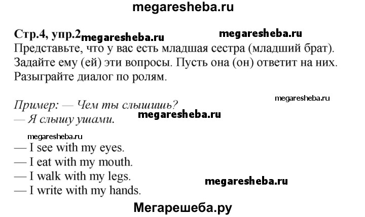 Подробный решебник (ГДЗ) по Английскому языку за 3 (третий) класс - готовый ответ часть 2. страница - 4. Авторы учебника: Верещагина, Притыкина, Углубленный уровень. Издательство: Просвещение 2013-2023.