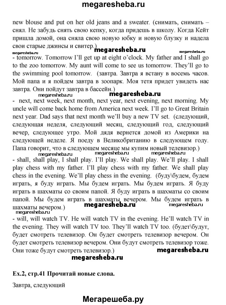 Подробный решебник (ГДЗ) по Английскому языку за 3 (третий) класс - готовый ответ часть 2. страница - 41. Авторы учебника: Верещагина, Притыкина, Углубленный уровень. Издательство: Просвещение 2013-2023.