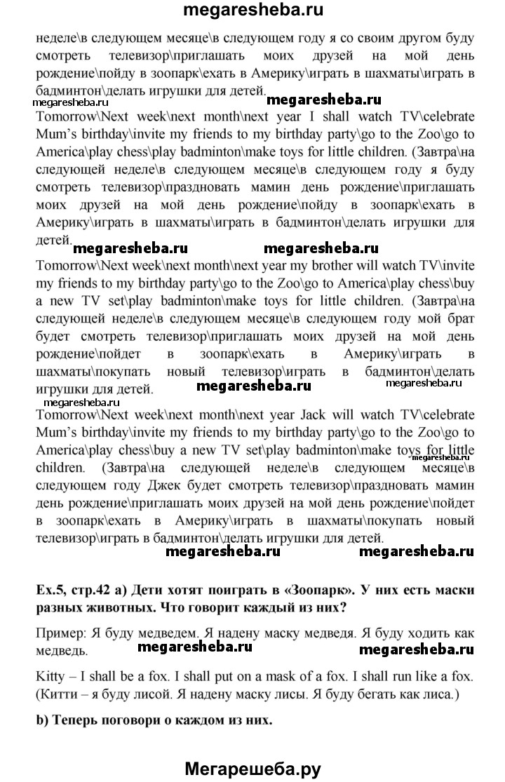 Подробный решебник (ГДЗ) по Английскому языку за 3 (третий) класс - готовый ответ часть 2. страница - 42. Авторы учебника: Верещагина, Притыкина, Углубленный уровень. Издательство: Просвещение 2013-2023.