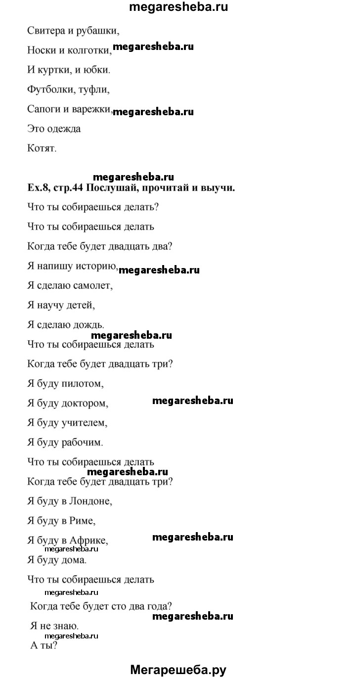 Подробный решебник (ГДЗ) по Английскому языку за 3 (третий) класс - готовый ответ часть 2. страница - 44. Авторы учебника: Верещагина, Притыкина, Углубленный уровень. Издательство: Просвещение 2013-2023.