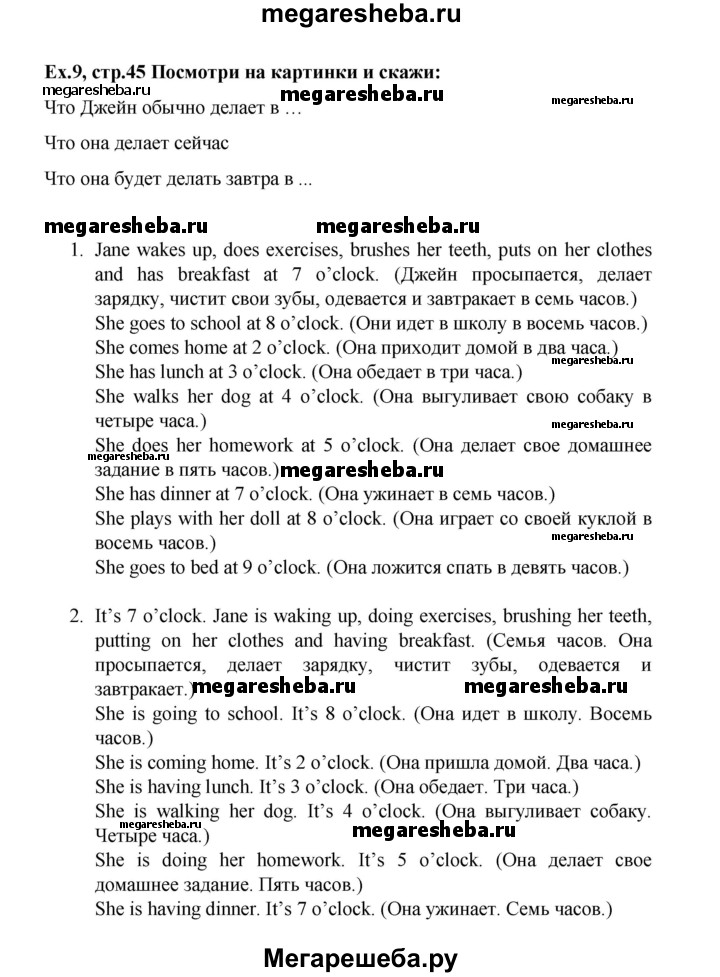 Подробный решебник (ГДЗ) по Английскому языку за 3 (третий) класс - готовый ответ часть 2. страница - 45. Авторы учебника: Верещагина, Притыкина, Углубленный уровень. Издательство: Просвещение 2013-2023.