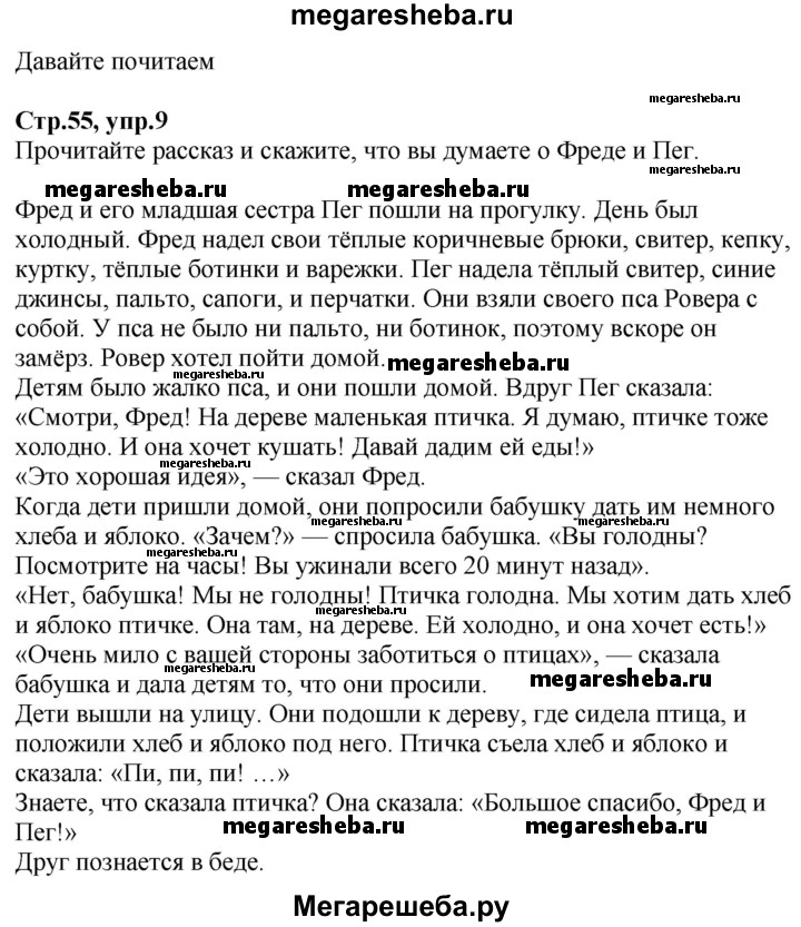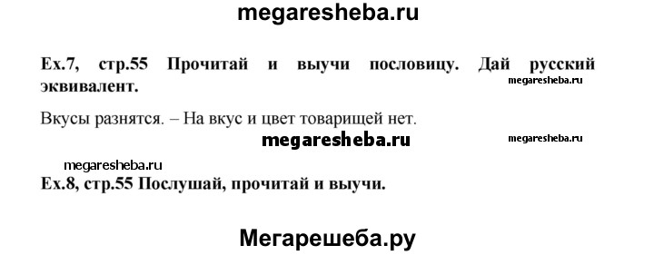 Подробный решебник (ГДЗ) по Английскому языку за 3 (третий) класс - готовый ответ часть 2. страница - 55. Авторы учебника: Верещагина, Притыкина, Углубленный уровень. Издательство: Просвещение 2013-2023.