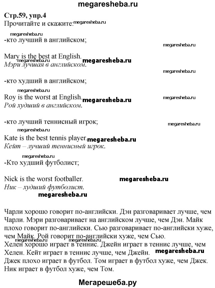 Подробный решебник (ГДЗ) по Английскому языку за 3 (третий) класс - готовый ответ часть 2. страница - 59. Авторы учебника: Верещагина, Притыкина, Углубленный уровень. Издательство: Просвещение 2013-2023.