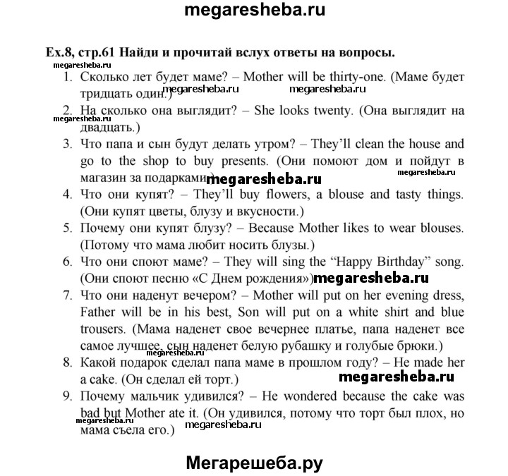 Подробный решебник (ГДЗ) по Английскому языку за 3 (третий) класс - готовый ответ часть 2. страница - 61. Авторы учебника: Верещагина, Притыкина, Углубленный уровень. Издательство: Просвещение 2013-2023.