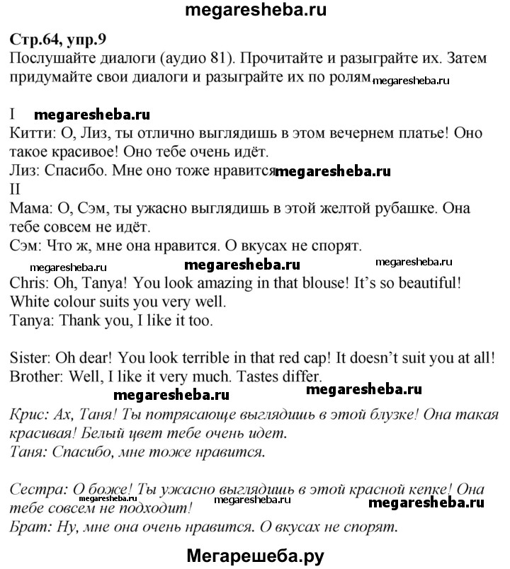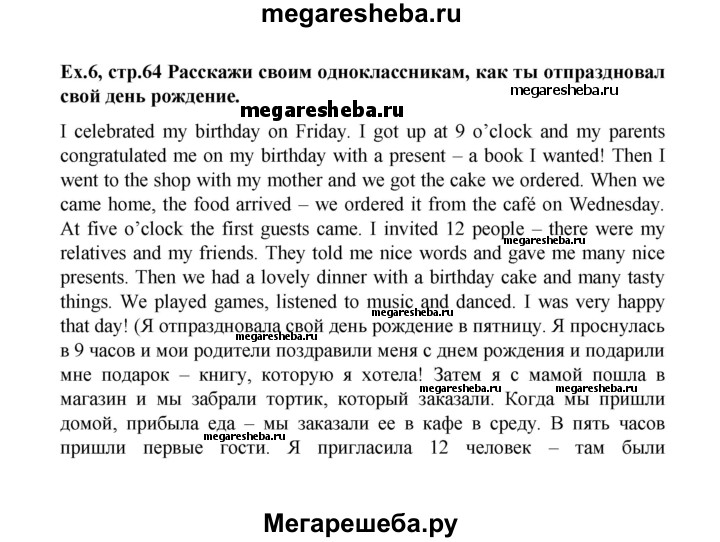 Подробный решебник (ГДЗ) по Английскому языку за 3 (третий) класс - готовый ответ часть 2. страница - 64. Авторы учебника: Верещагина, Притыкина, Углубленный уровень. Издательство: Просвещение 2013-2023.