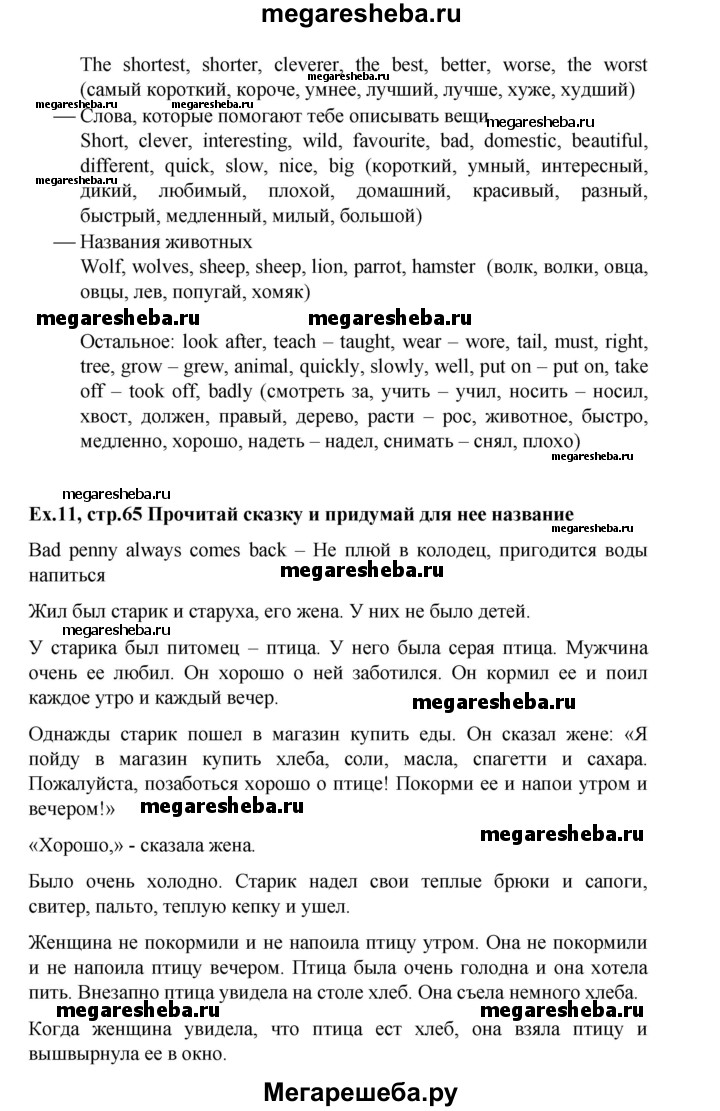 Подробный решебник (ГДЗ) по Английскому языку за 3 (третий) класс - готовый ответ часть 2. страница - 65. Авторы учебника: Верещагина, Притыкина, Углубленный уровень. Издательство: Просвещение 2013-2023.