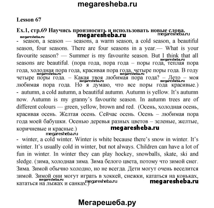 Подробный решебник (ГДЗ) по Английскому языку за 3 (третий) класс - готовый ответ часть 2. страница - 69. Авторы учебника: Верещагина, Притыкина, Углубленный уровень. Издательство: Просвещение 2013-2023.