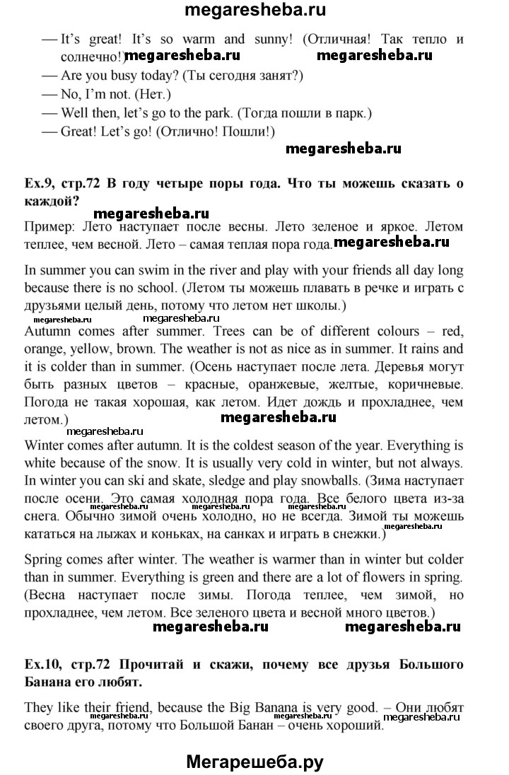 Подробный решебник (ГДЗ) по Английскому языку за 3 (третий) класс - готовый ответ часть 2. страница - 72. Авторы учебника: Верещагина, Притыкина, Углубленный уровень. Издательство: Просвещение 2013-2023.