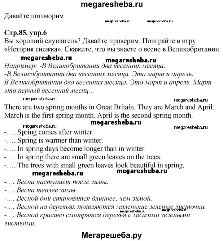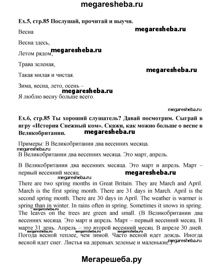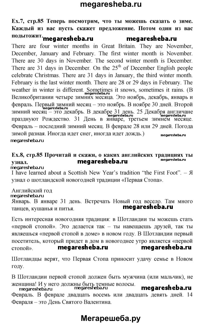 Подробный решебник (ГДЗ) по Английскому языку за 3 (третий) класс - готовый ответ часть 2. страница - 85. Авторы учебника: Верещагина, Притыкина, Углубленный уровень. Издательство: Просвещение 2013-2023.