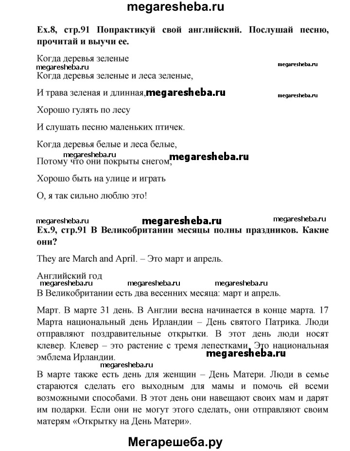 Подробный решебник (ГДЗ) по Английскому языку за 3 (третий) класс - готовый ответ часть 2. страница - 91-92. Авторы учебника: Верещагина, Притыкина, Углубленный уровень. Издательство: Просвещение 2013-2023.
