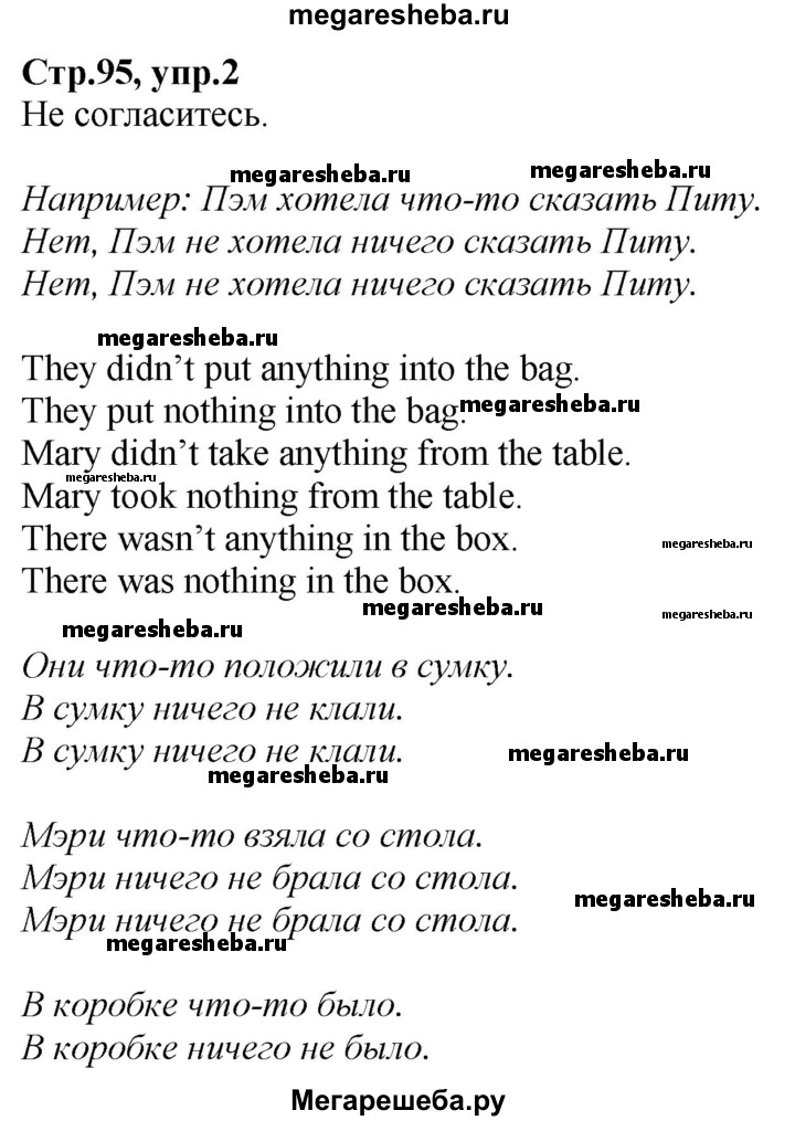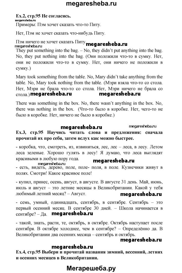 Подробный решебник (ГДЗ) по Английскому языку за 3 (третий) класс - готовый ответ часть 2. страница - 95. Авторы учебника: Верещагина, Притыкина, Углубленный уровень. Издательство: Просвещение 2013-2023.
