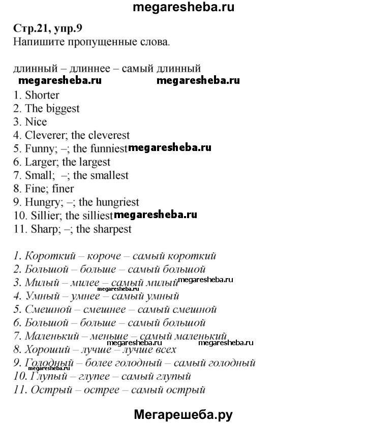 Подробный решебник (ГДЗ) по Английскому языку за 3 (третий) класс рабочая тетрадь - готовый ответ страница - 21. Авторы учебника: Верещагина, Притыкина, Углубленный уровень. Издательство: Просвещение 2017-2023.
