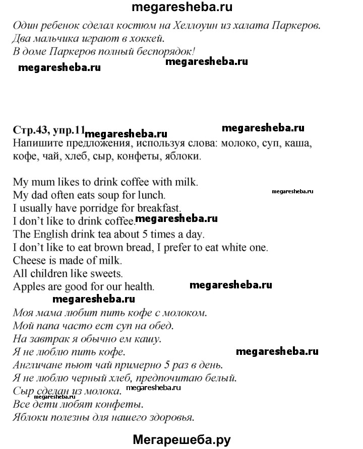 Подробный решебник (ГДЗ) по Английскому языку за 3 (третий) класс рабочая тетрадь - готовый ответ страница - 43. Авторы учебника: Верещагина, Притыкина, Углубленный уровень. Издательство: Просвещение 2017-2023.