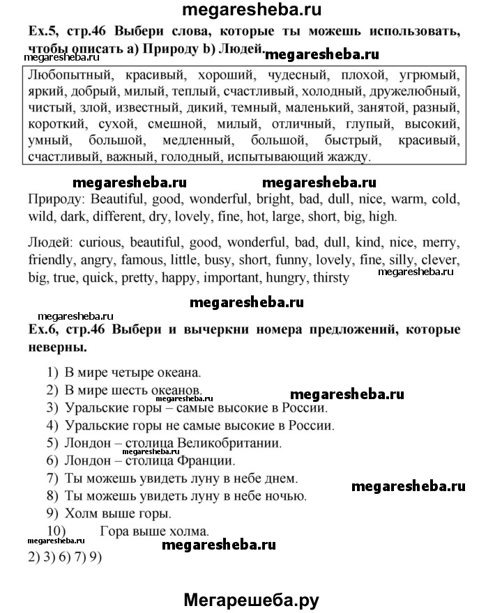 Подробный решебник (ГДЗ) по Английскому языку за 3 (третий) класс рабочая тетрадь - готовый ответ страница - 46. Авторы учебника: Верещагина, Притыкина, Углубленный уровень. Издательство: Просвещение 2017-2023.