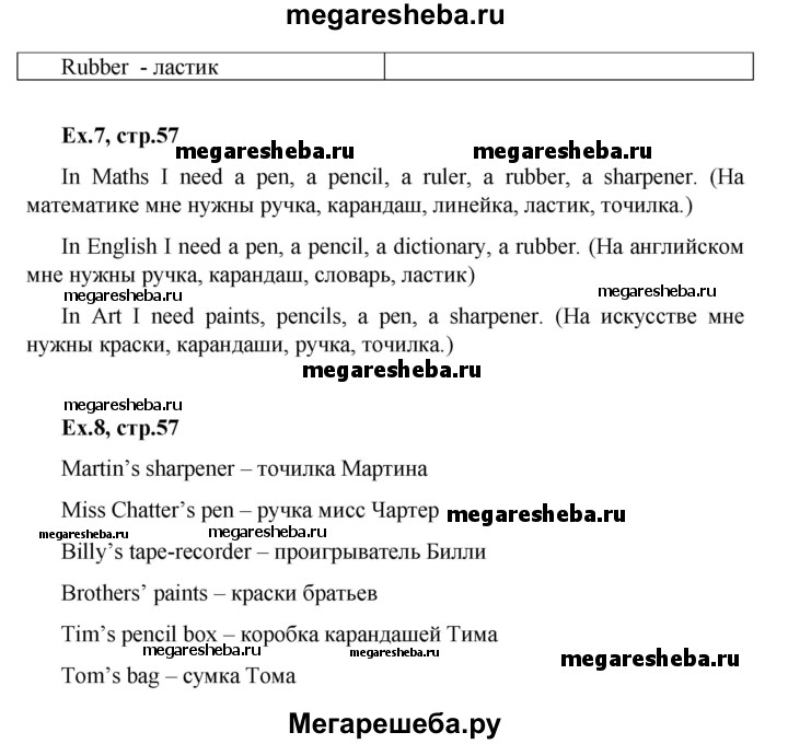Подробный решебник (ГДЗ) по Английскому языку за 4 (четвертый) класс рабочая тетрадь с контрольными работами Enjoy English - готовый ответ страница - 57. Авторы учебника: Биболетова, Денисенко, Трубанева. Издательство: Аст/Астрель 2016.