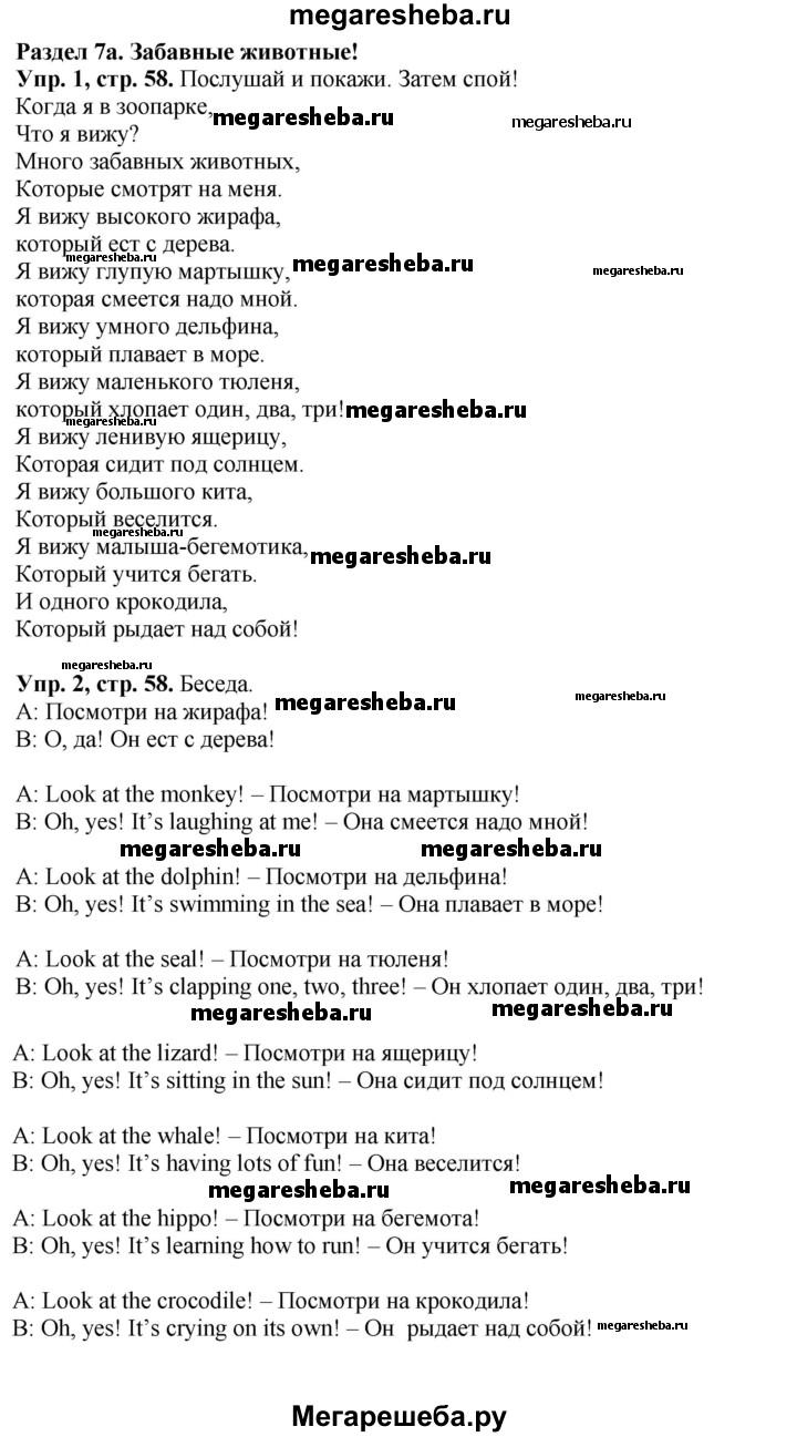 Подробный решебник (ГДЗ) по Английскому языку за 4 (четвертый) класс Spotlight - готовый ответ часть 1. страница - 58. Авторы учебника: Быкова, Дули, Поспелова, Эванс. Издательство: Просвещение 2016-2023.