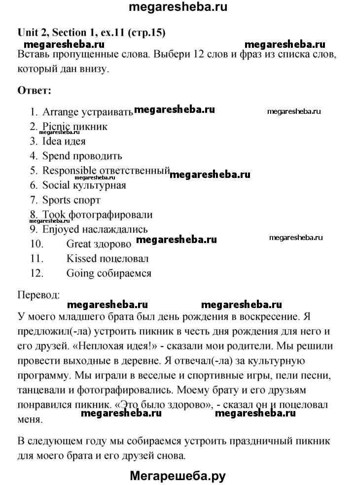 ГДЗ по английскому языку 5‐6 класс Биболетова рабочая тетрадь unit 2 - 11
