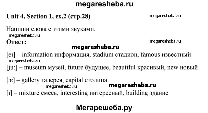 Подробный решебник (ГДЗ) по Английскому языку за 5‐6 (пятый‐шестой) класс рабочая тетрадь - готовый ответ unit 4 - 2. Авторы учебника: Биболетова, Добрынина, Трубанева. Издательство: Титул 2016.