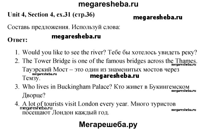 Подробный решебник (ГДЗ) по Английскому языку за 5‐6 (пятый‐шестой) класс рабочая тетрадь - готовый ответ unit 4 - 31. Авторы учебника: Биболетова, Добрынина, Трубанева. Издательство: Титул 2016.