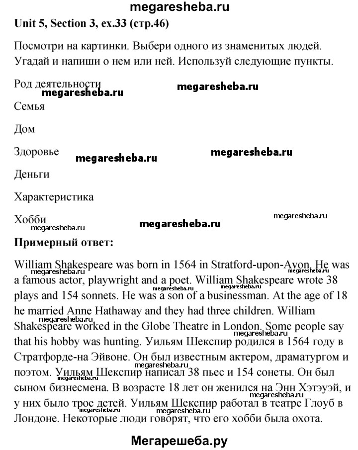 ГДЗ по английскому языку 5‐6 класс Биболетова рабочая тетрадь unit 5 - 33