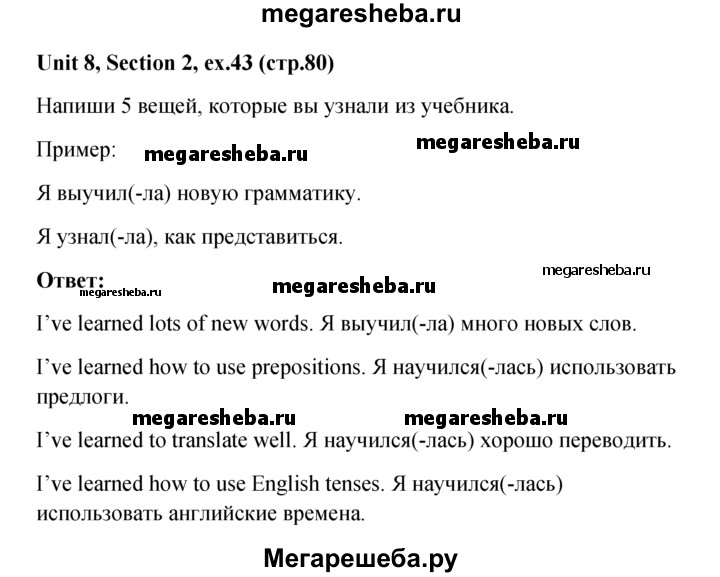ГДЗ по английскому языку 5‐6 класс Биболетова рабочая тетрадь unit 8 - 43