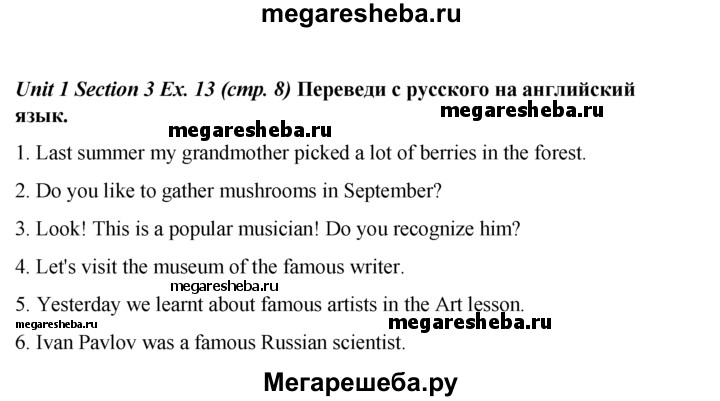 ГДЗ по английскому языку 5 класс Биболетова рабочая тетрадь unit 1 section 1-7 - 13