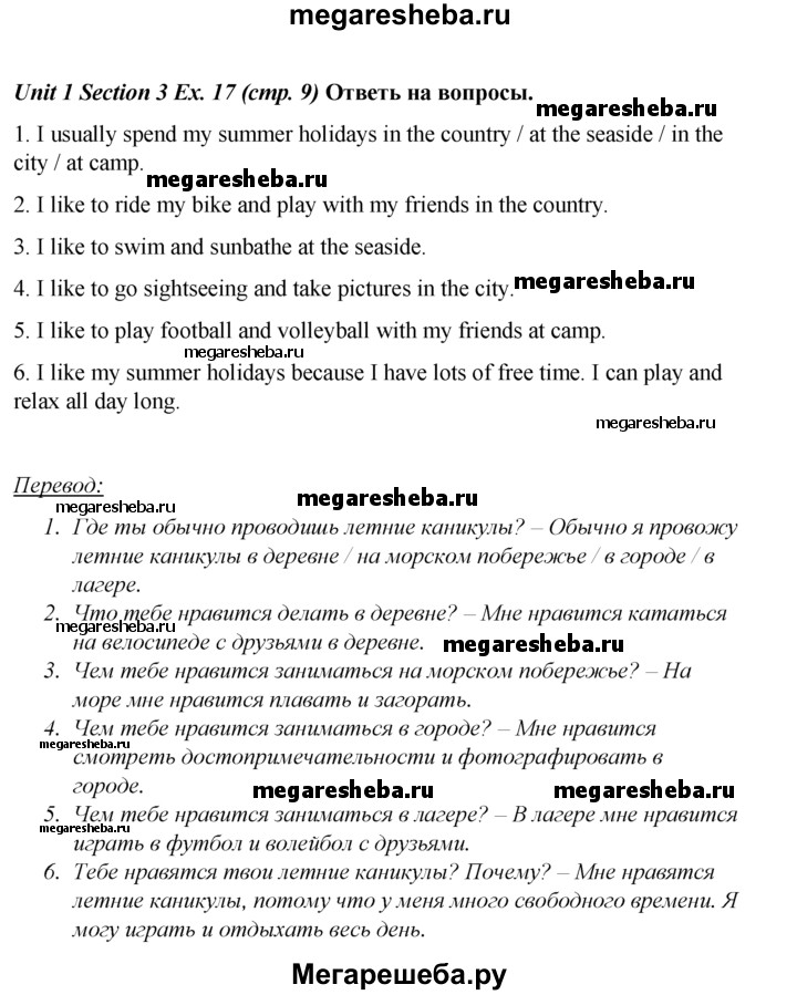 ГДЗ по английскому языку 5 класс Биболетова рабочая тетрадь unit 1 section 1-7 - 17