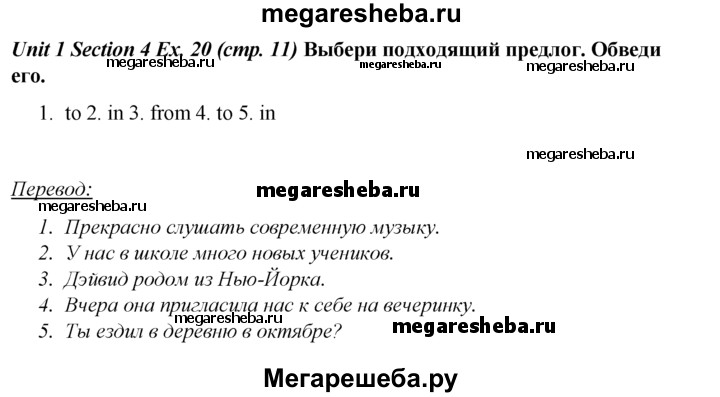 ГДЗ по английскому языку 5 класс Биболетова рабочая тетрадь unit 1 section 1-7 - 20