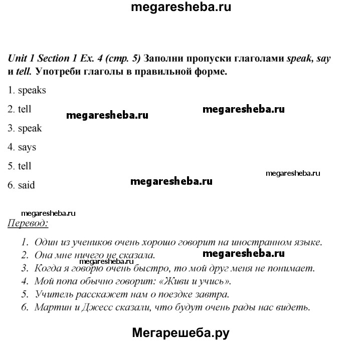 Подробный решебник (ГДЗ) по Английскому языку за 5 (пятый) класс рабочая тетрадь - готовый ответ unit 1 section 1-7 - 4. Авторы учебника: Биболетова, Денисенко, Трубанева. Издательство: Титул 2016-2023.