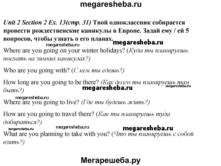 Подробный решебник (ГДЗ) по Английскому языку за 5 (пятый) класс рабочая тетрадь - готовый ответ unit 2 section 1-4 - 13. Авторы учебника: Биболетова, Денисенко, Трубанева. Издательство: Титул 2016-2023.