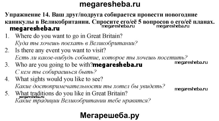 Подробный решебник (ГДЗ) по Английскому языку за 5 (пятый) класс рабочая тетрадь - готовый ответ unit 2 section 1-4 - 14. Авторы учебника: Биболетова, Денисенко, Трубанева. Издательство: Титул 2016-2023.